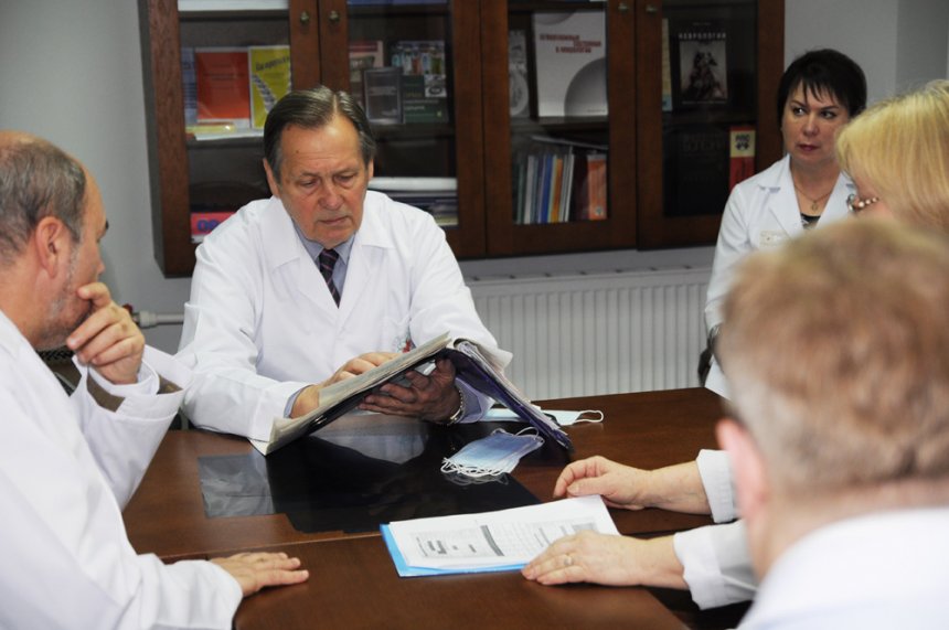 В нашем учреждении академик Александр Чучалин провел консилиум по разбору сложного клинического случая у пациента пульмонологического отделения. Также во время посещения академик Александр Чучалин ознакомился с организацией работы пульмонологической службы нашего учреждения. Главный терапевт Министерства здравоохранения РФ высоко оценил качество и организацию работы ГБУЗ ПОКБ им. Н.Н. Бурденко, особо отметив высокий профессионализм врачей - специалистов и современную материально - техническую базу учреждения.