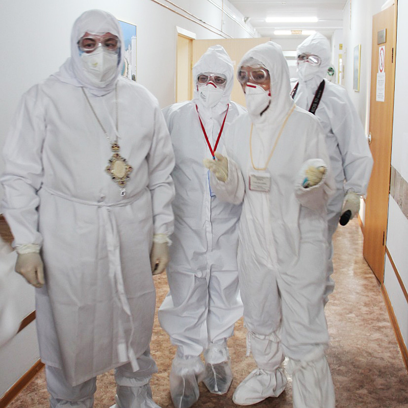 В инфекционном стационаре проходят лечение пациенты с коронавирусной инфекцией, чьё состояние здоровья отягощено наличием заболеваний различных нозологий. В этот день они были воодушевлены посещением их митрополитом: кто просил благословления, кто просил окропить их святой водой - все ждут скорейшего выздоровления!