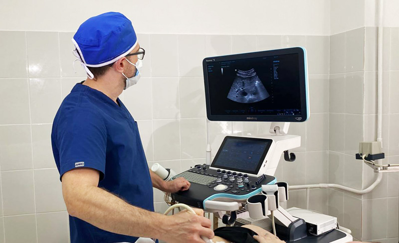 «Процедура состоит в прокалывании стенки кисты тонкой иглой и эвакуации ее жидкого содержимого. После этого в полость на две минуты вводится склерозирующий препарат, - поясняет лечащий врач Сергей Владимирович ПЧЕЛИНЦЕВ. – Процедура склерозирования кисты печени была выполнена дважды с интервалом в 2 дня. При контрольном ультразвуковом исследовании перед выпиской кистозная полость в печени не визуализировалась и болевой синдром купирован».